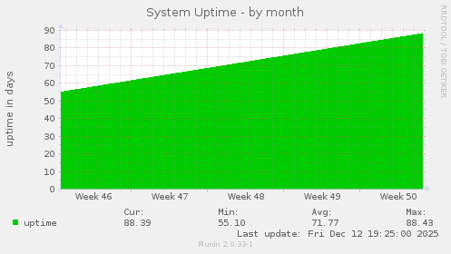 | uptime | uptime | gauge | The system uptime itself in days. |